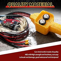 Push Button Control: Car winch remote is designed with two buttons, forward and reverse, and clearly marked with pointing arrows, you only need to press these two buttons to realize the precise control of the winch, easy to handle, quick to get started, and greatly improve the efficiency of work Thickened Cable: Winch controller designed with thicker cables, to avoid cable thermal and poor contact which affect winch power, cable length 47.24 inch and 31.49 inch to keep safe distance for use, designed with ergonomic handle for comfortable gripping experience Quality Material: Car winch switch made of quality ABS with high strength and hardness, not easy to break and damage, good waterproof and dustproof, effectively resist rain and dust, and keep long term stable use even outdoors, copper contacts to keep stable current transmission Easy to Use: Includes 2 longer cables and 2 shorter cables, longer cable to connect winch and shorter cable to connect battery, red cable is connected to positive terminal and black cable is connected to negative terminal, once the connection is complete, it is ready for use Wide Compatibility: Universal design, winch controller has large load capacity, widely compatible with most winches such as 1500lbs/2000lbs/2500lbs/3000lbs/3500lbs/4000lbs/4500lbs/5000lbs etc, and widely compatible with 12V/24V/48V batteries, to meet your needs