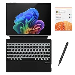 [What's in the box] Microsoft Surface Pro 11 13" Tablet, CyberGeek Backlit Keyboard & Stylus Pen (Compatible with Microsoft Surface Pro, Not Made by Microsoft), 12-Month Microsoft 365 Personal Subscription. The most flexible laptop, reimagined — Surface Pro helps you get the most out of your day with accelerated performance that unlocks a new AI era to enable Copilot experiences, and battery life₅ to keep you going all-day long. All wrapped up in an ultra-portable design that can replace your tablet, your laptop, and does more than you could ever imagine. [13" PixelSense Flow OLED display with 2880 x 1920 resolution] The first Surface Pro with OLED, see every detail with greater pixel density with a 1M:1 contrast ratio and a dynamic refresh rate up to 120Hz. [Snapdragon X Elite (12 core) processor & Qualcomm Adreno GPU] The Snapdragon X Elite (12 core) Processor powering Copilot+ PCs ushers in a new era of performance, intelligence, and power efficiency for creators, collaborators, and engineers alike. Get astonishing processing speeds and power efficiency from a record-breaking CPU and NPU. The integrated Qualcomm Adreno GPU delivers graphics-intensive presentations and entertainment. [AI-enhanced Surface Studio Camera] The ultra-wide front facing camera paired with AI-powered Studio effects like automatic framing keeps you, or the whole family in focus, even as you move around your space. [All day battery life] With up to 14 hours of battery life, Surface Pro can keep up with whatever you need to do, wherever you need to do it, all day long.