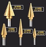 - Step Drill Bits, 5PCS HSS Titanium Step Drill Bit Set, High Speed Steel Step Bits-Gold