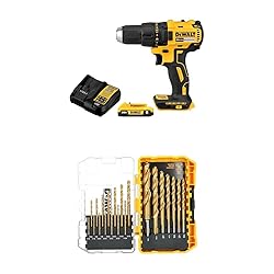 This bundle includes 1 Drill Driver, 1 Battery, 1 Charger and 21 Pcs Drill Bit Set Ultimate Convenience: Save time and hassle with this perfectly matched DEWALT tool and accessory bundle—everything you need for efficient drilling and fastening, delivered together. Superior Performance: Enjoy long run time and enhanced durability with the DEWALT brushless motor, plus titanium nitride coated bits for extended life and cleaner holes. Designed for Comfort and Control: Compact, lightweight tool with an ergonomic grip ensures easy handling and precise control, even in tight spaces. Enhanced Visibility and Reliability: Work confidently in dim environments with an integrated LED light and benefit from no-spin shanks and a tapered web design that reduces bit breakage.