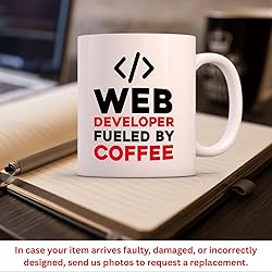 Web Developer Fueled Coffee Mug, Programming Gift for Backend Frontend Coder, 11 oz Ceramic