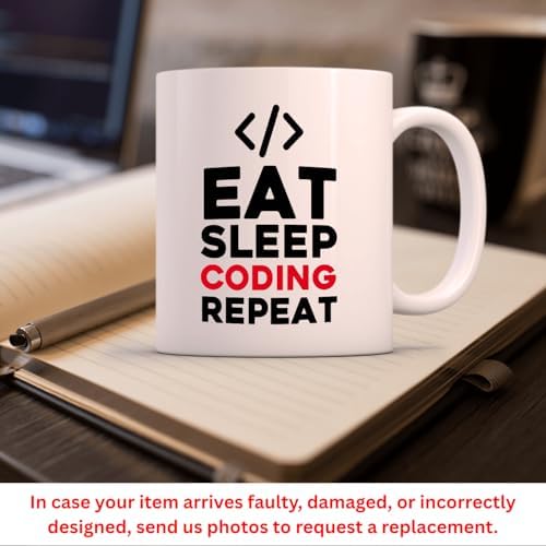 Eat Sleep Coding Repeat Coffee Mug, Developer Gift for Computer Scientist, 11 oz Ceramic