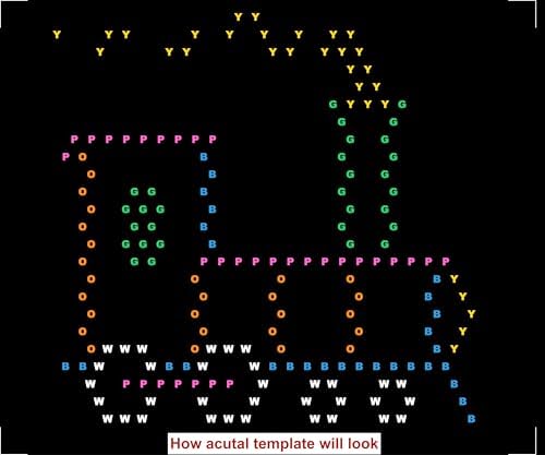 - Templates are clearly marked with colored letters indicating required peg color
