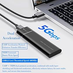 Hard Drive Enclosure - NGFF/SATA Protocol, USB Interface, 5Gbps High-Speed Transfer, Supports 8TB Hard Drives, Stylish Metal Shell Design, Suitable for Laptops and PCs (Black)