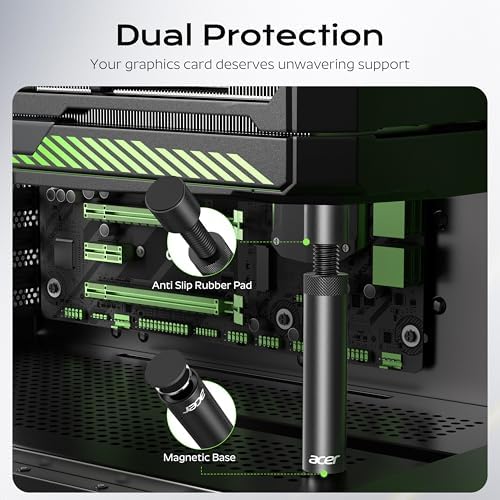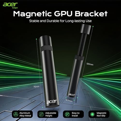 - [Ajustment Freely] The detachable design features precise 0.5mm increments for easy height adjustment, allowing for a perfect fit in various cases and simpler installation. With a large diameter of 14.7mm, it surpasses the thickness of other GPU supports. acer GPU sag bracket offers maximum load capacity, providing reliable support for your graphics car.