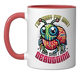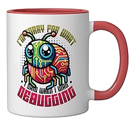 Funny debugger design to work long hours of solving code puzzles. Great code debugging and programmer motif. I'm Sorry For What I Said When I Was Debugging. 11-ounce ceramic mug is dishwasher and microwave-safe, lead and BPA free Features glossy finish with accent colors on interior, handle, and rim of two-tone designs