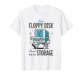 - From Floppy Disk to Cloud Storage retro computer art for tech lovers, gamers, IT students, coders, programmers, engineers, nostalgic 80s 90s fans. Fun vintage tech evolution graphic for birthdays, Christmas, office events, tech week celebrations. Wear this retro computer tech evolution humor look for school, college, workdays, casual Fridays, meetups, conventions, LAN parties, robotics events. Cute walking PC with vintage blue style for programmers, system admins, data nerds, cloud users, nostalgic
