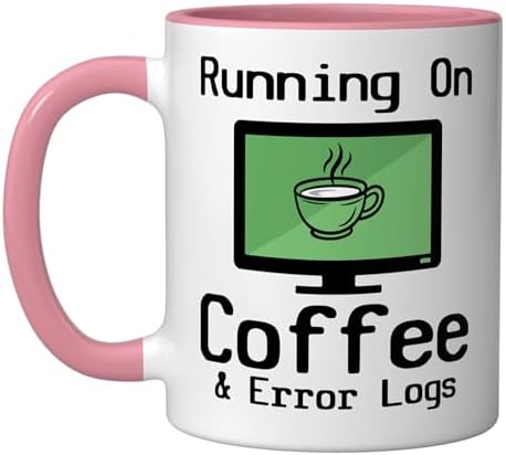 Running On Coffee & Error Logs Programmer Coding Ceramic Mug, Pink/White