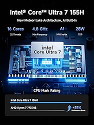 【Dominant AI Performance for Pro Workflows】 Powered by the elite Intel Core Ultra 7 155H (16C/22T, up to 4.8GHz), the B11 Power represents a paradigm shift in mini PC computing. Featuring a dedicated NPU for AI acceleration, it is engineered to crush complex tasks—from code compiling and video rendering to deep learning—delivering workstation-grade efficiency that far exceeds standard N-series or older i7 processors. 【24GB LPDDR5 Speed & Triple-Storage Architecture】 Multitask with authority using 24GB LPDDR5 4400MHz RAM, offering significantly higher bandwidth than DDR4 for instant data processing. The system features a unique Triple-Storage Design: a pre-installed 1TB PCIe 4.0 SSD, plus an extra M.2 NVMe slot AND a 2.5" SATA bay. This allows for massive expansion up to 4TB+, perfect for building a local NAS or extensive media server. 【Intel Arc Graphics & Future-Proof DP 2.1】 Experience cinematic visuals with built-in Intel Arc Graphics (supporting Ray Tracing & AV1). Unlike entry-level models, the B11 Power features a cutting-edge DisplayPort 2.1 (UHBR20), alongside HDMI 2.1 and Full-Function USB-C. Drive up to three 4K monitors simultaneously (or 8K output) for an immersive command center tailored for stock trading, 3D design, or high-end streaming. 【2.5Gbps Ethernet & Comprehensive Connectivity】 Designed for enthusiasts who demand stability. The 2.5Gbps LAN port offers more than double the speed of standard Gigabit connections, ensuring lightning-fast transfers for home labs and servers. Combined with WiFi 6 and multiple USB 3.2 Gen 2 ports, the B11 Power provides low-latency connectivity for all your professional peripherals and high-speed external drives. 【Exquisite "Starry Sky" Design & Silent Cooling】 Encased in a premium chassis with a unique "Starry Sky Blue" disc texture, this compact powerhouse adds a touch of sophistication to any desk. Despite its power, the smart cooling system keeps temperatures low and operation whisper-quiet. A VESA mount is included, allowing for a clean, invisible setup behind your monitor or TV. 【Reliable Warranty & Professional Support】 Backed by BMAX's 1-Year Warranty and lifetime technical guidance, your investment is secure. Whether you are running Windows 11 (pre-installed) or Linux/Ubuntu (supported), our dedicated 24/7 support team is ready to assist with drivers, setup, and troubleshooting to ensure a smooth, worry-free experience.
