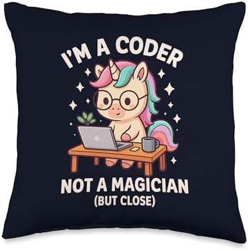 I'm A Coder Not A Magician Unicorn Funny Programmer Science Throw Pillow