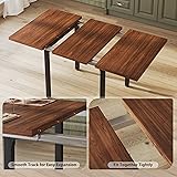 Dining Table Set for 4, Extendable Kitchen Table Set with 4 Chairs, Curved Backrest, Dining Room Table with Solid Metal Frame & MDF Board, for Kitchen Room and Small Spaces, Easy Assembly, Walnut