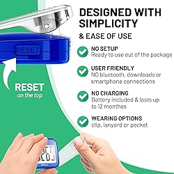 SIMPLE & EASY TO USE: 3D Pedometer for Steps Only. No Bluetooth, no app or smartphone connections required. Only one reset button, To reset the counter, just only need to press and hold the RESET button for 3-5 seconds to get the step to "0" ACCURATE COUNTING: Pedometer has advanced 3D Tri-Axis Sensor technology, so it is much more accurate than most pedometers. Simple functions and design makes it user friendly for men, women, kids, seniors EASY TO READ: With large LCD multi-function display, you can clearly and easily read the numbers at a glance. Makes it the perfect fitness monitor for Everyone EASY TO CARRY: Pedometer is only 26.5g. It is easy to put it in pocket or bag. It contains a removable clip and a lanyard. Can be clip on the belt, pants, shoes. Hanging on neck LONG BATTERY LIFE: Included a CR2032 battery can last up to one year. Pedometer auto sleeps when you are not moving and auto wakes and counts steps when you start moving again
