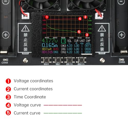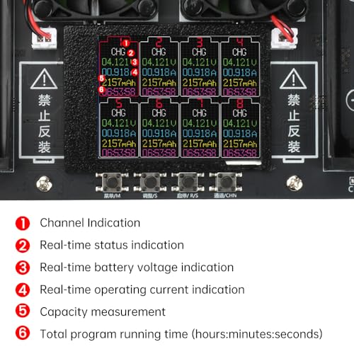 8-Channel Battery Capacity Tester, 2.4" Color Screen Electronic Load Tester with Curve Display Compatible with DIY Powerwall & Sorting