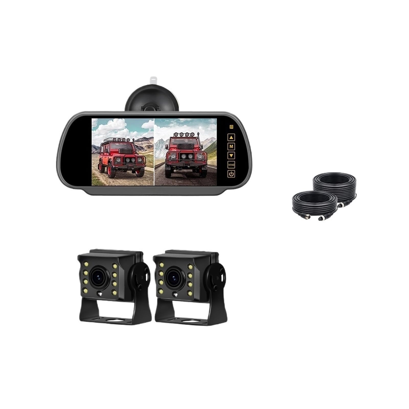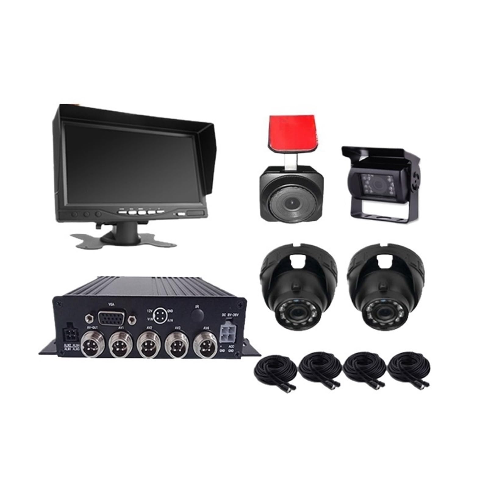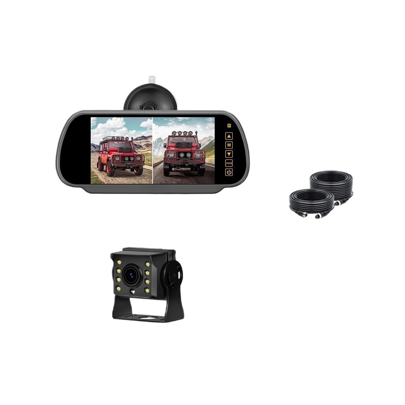 Product Features:7 inch IPS touch screen.Can display 2 ~ 4 screens at the same time.Support for loop recording, Maximum 128G TF card.Support screen mirroring function.Support display time and date, can set the license plate, can adjust the brightness and volume.Multi-language support: English, Korean, Russian, Spanish, French, Portuguese, German, Japanese, Chinese7INCH HD CAR MONITOR2CH AHD DVR IPS MONITORCan display 2-4 screen at the same timeLOOP RECORDINGIt support max 128G sd card, when the sd card is full ,it will cover the previous video to continue the recording,please use C10 Card or aboveAHD 1080P CameraViewing angle: 140 degreesEffective pixels: 1920×1080PImage horizontal resolution: 130W pixelsVideo output: AHD VIDEO (1080P)Waterproof: IP68Night Vision: Starlight Night Vision. The visible distance is greater than 20 meters.Night Vision Image : Automatic Gain Control, Auto White Balance, Auto Backlight Compensation .Working power supply: DC12V-24VWorking temperature: -20 ° C ~ +50 ° CPacking Included:1 x 7' Car Monitor2x Video Cable 5m*1 15m*1 (option)0/2 x1 Camera(option)Welcome to my auto parts specialty store!Whether you are the "detail control" of your car or the "practicality" pursuing efficient maintenance, we can find high-quality automotive parts that are suitable for you here - from daily maintenance filters and brake pads to performance enhancing modified parts. We carefully select each product to ensure precise adaptation and reliable quality.We specialize in the field of automotive parts and are familiar with the adaptation needs of various vehicle models, especially focusing on providing customized solutions for your car. Thoughtful customer service is always available to answer your installation, adaptation, and other questions, allowing you to buy with confidence and use with ease.Thank you for choosing us. Let's work together to protect your car and start a smooth travel experience!