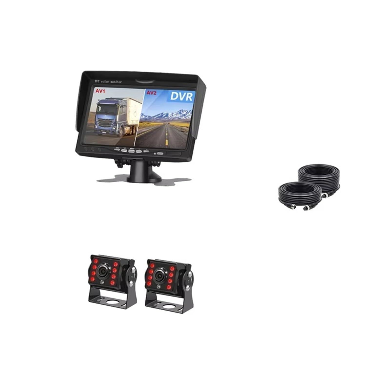 - 2CH Truck Backup Camera 1920*1080 Recording DVR AHD Night Vision With 7" Vehicle Rear View Monitor Support SD Card