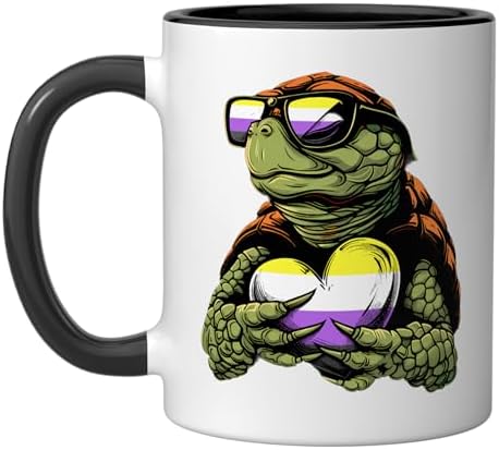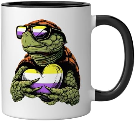 LGBT Turtle Non Binary Heart Nonbinary Flag Non Binary Pride Ceramic Mug, Black/White