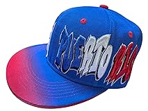DESIGN FEATURES: Premium snapback hat featuring bold graffiti-style artwork, Puerto Rico-inspired graphics, and a vibrant blue-to-red gradient brim PREMIUM CONSTRUCTION: High-quality embroidered details with raised 3D lettering and intricate stitching for lasting durability ADJUSTABLE FIT: Snapback closure system allows for customizable sizing to fit most head sizes comfortably STYLISH DETAILS: Contrasting red button top, ventilation eyelets, and decorative front panel embellishments enhance the overall look COLOR SCHEME: Eye-catching royal blue crown with red accents and gradient-style brim transition from blue to red for striking visual appeal