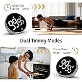 - This kitchen timer offers clear time tracking with an easy-to-read LED display and simple one-button control. It includes count-up and count-down modes, adjustable volume levels, and a memory function for repeated tasks. With strong magnets on the back for convenient placement and a durable ABS build, it works well for studying, cooking, workouts, and everyday time management. Suitable for Various Settings: Use this timer for studying, working, cooking, exercising, or managing activities in classrooms and offices. It provides clear timing support in both quiet and active settings. Whether you need a reliable teachers timer and students timer for the classroom, a meeting timer for the office, an exercise timer or gym timer for your workout, a game timer for fun, a BBQ timer or egg timer for the kitchen, this timer can handle it all. Its distinct barking timer alert ensures you never miss the signal.
