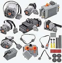 Power up your Building Block Technic creations with this Power Functions Motor Set! Includes Train Motor 88002, medium motor 8883, L motor 88003, XL motor 8882, Servo motor 88004. Includes AA battery box 8881, AAA battery Box 88000, light cable with 2 bright LEDs 8870, Extension Wire cable 8886, Power Functions Control Switch 8869, IR Reciver 8884, IR Remote 8879. Technic-Pieces Power Functions Motor Set works with all power function compatible full name branded building toys for creative building Technic Power Functions Motor Set works with all power function compatible full name branded building toys for creative building 32 pieces – For Bricks Fans above 10 years. Note: NOT included Installation instructions, AAA & AA battery, Bricks,