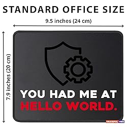 Ultra-Smooth Surface: Premium cloth texture ensures precise mouse control and smooth gliding. Optimized for fast movement and compatible with all laser and optical sensors. Non-Slip Rubber Base: The dense natural rubber backing grips the desktop firmly to prevent sliding, providing maximum stability for gaming or office work. Funny programmer hello world mouse pad. You had me at hello world. Funny gift for kids and adults that love programming. Makes mousemat great birthday or christmas present for programmers, software developers and coders. Mousepad Great gift for programmers who mousemat love to code hello world programs. Wear this funny programming mousepad when you are proud programmer. Great programming gift for men and women. Durable & Washable: Features fade-resistant high-definition printing. The water-repellent surface is easy to clean.