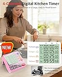 Digital Kitchen Timer for Cooking - 4 Channel Count Up Countdown Timer with Loud Alarm and Silent Mode, Large Display, Magnetic Back, Auto Memory for Classroom Study Gym, Battery Included (Pink)