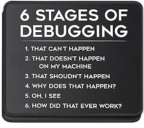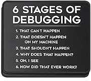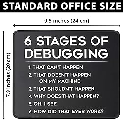 ULTRA-SMOOTH SURFACE: Optimized fine-weave texture ensures pixel-perfect tracking and responsive control for all optical and laser mice. Perfect for Gaming and high-precision tasks. NON-SLIP & STABLE: Heavy-grip, textured rubber base prevents unwanted movement, keeping the mouse pad firmly secured on your desk for maximum control. Coding 6 stages of debugging bug computer programmer mousepad is computer programmer, computer mousemat science major, geek, nerd, gamer, software engineer or code. Mouse pad Are you coder? this mousemat mouse pad is great gift for computer programmers, computer and nerds, computer software engineers, coders, java programmers. WATERPROOF & DURABLE: Features anti-fray stitched edges and a spill-resistant coating for easy cleanup and long-term durability. A reliable desk mat built to last.