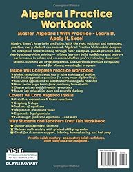 - Master Algebra I Through Practice — Learn It, Apply It, Excel Success in Algebra I comes from understanding core concepts and then practicing them until they become second nature. Algebra I Practice Workbook gives students the structured guidance and skill-building exercises they need to improve performance in class, on quizzes and tests, and on end-of-course exams. With clear worked examples, guided practice, and cumulative review, this workbook helps students strengthen their reasoning, boost confidence, and develop long-term mastery — not just short-term memorization. 📘 What’s Inside This Complete Practice Workbook ✔ Step-by-step worked examples for every major topic ✔ Skill-building practice problems with increasing difficulty ✔ Real-world applications to deepen understanding ✔ Spiral review pages to reinforce previously learned concepts ✔ Chapter quizzes and full-length review tests to track progress ✔ Answer key included for self-checking and independent learning 🧠 Covers All Core Algebra I Concepts 🔹 Variables, expressions & linear equations 🔹 Graphing on the coordinate plane & slope 🔹 Systems of equations 🔹 Inequalities & absolute value 🔹 Exponents & polynomials 🔹 Factoring & quadratic equations …and more Students learn both how to solve problems and why the strategies work. ⭐ Perfect For • Classroom reinforcement • Homework help and tutoring • Test and exam preparation • Homeschooling and independent study • Students who need extra practice or want to get ahead 📘 Practice builds mastery — and mastery builds confidence. Give your learner the tools to succeed in Algebra I. Kyle Kavyany