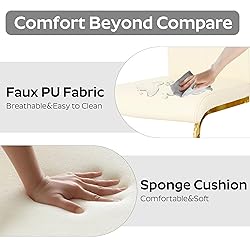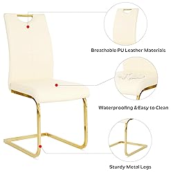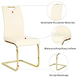 KATBOC 5-Piece Dining Table Set for 4, Modern Rectangular Glass Table with 4 Upholstered Leather Chairs, Space-Saving Dining Room Furniture Table & Chair Sets for Small Spaces & Apartment(Beige&Gold)