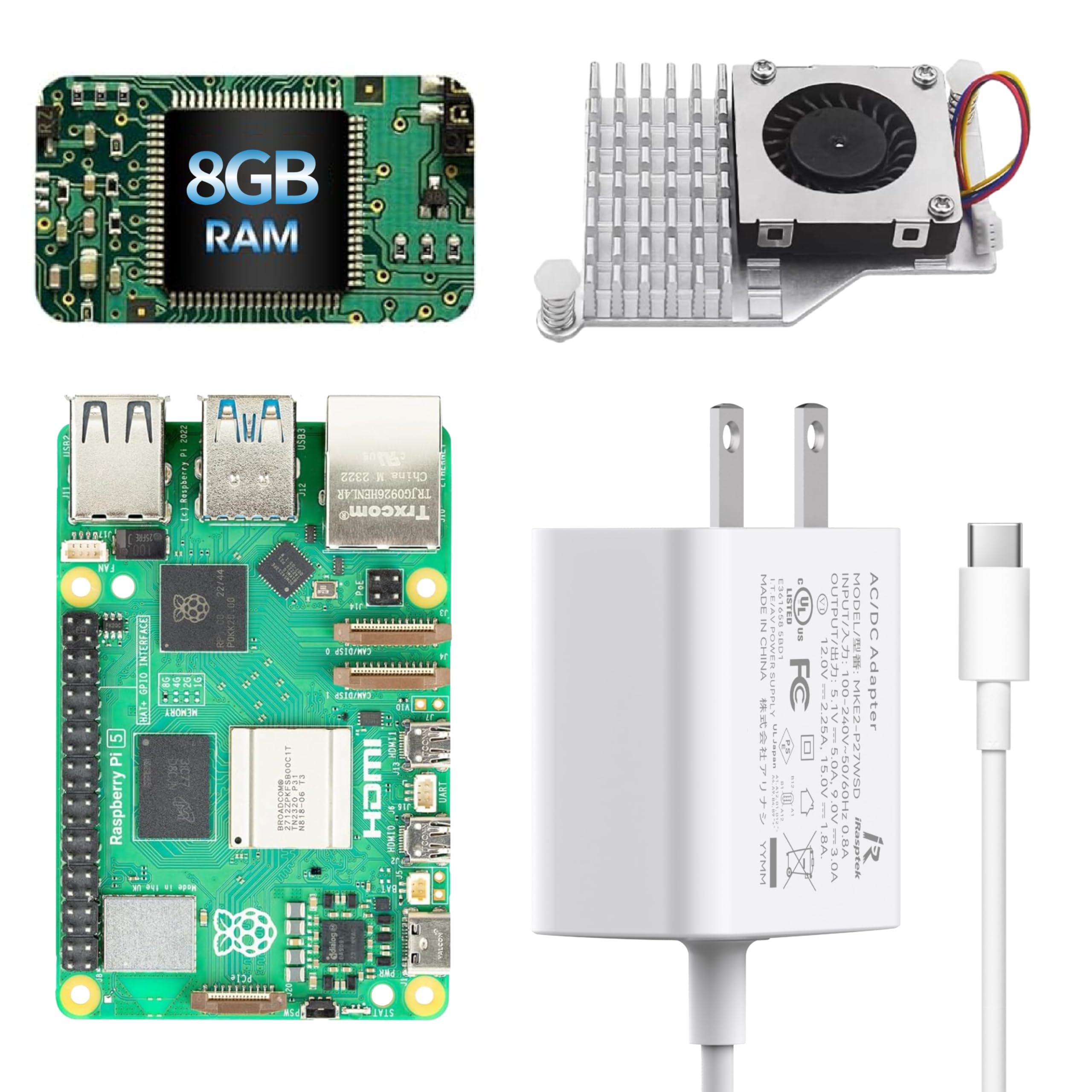 iRasptek Basic Starter Kit for Raspberry Pi 5 4GB RAM- Includes 4GB Board, 27W PD Power Supply, Pi5 Metal Case and Active Cooler