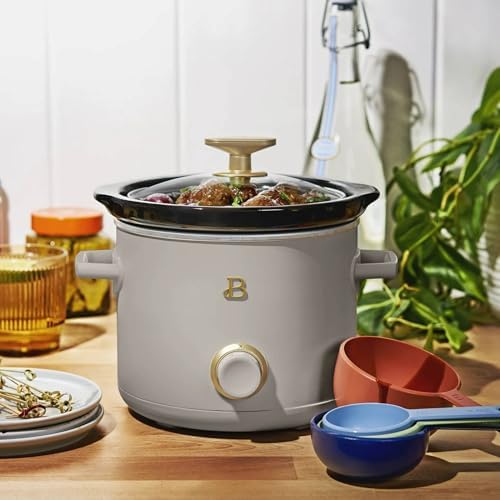 Beautiful Kitchenware combines elegant design and contemporary colors for high-performance appliances that look beautiful on your kitchen counter. This 2-Pack, 2 Quart Slow Cooker Set is ideal for small-space living or hosting parties. Thoughtfully designed, each compact slow cooker serves 2 people, making it perfect for sauces, dips or cooking a warm meal for a small group. Gold accents and a soft matte premium finish brings an elevated designer touch to any space.