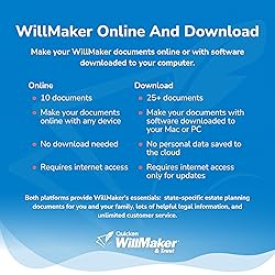 America's #1 estate planning software -- Download (Windows), or Access Online. Create legally binding wills, living trusts, powers of attorney, health care directives, transfer on death deeds, and more. Quicken WillMaker & Trust is the original estate planning software created and updated regularly by the experts at Nolo. After you download the software to your computer, you can create your documents there or use WillMaker online with downloadable software for Mac and Windows - your choice. ESTATE PLANNING YOU CAN TRUST -- Simple. Easy. Trusted. Get immediate access to easy-to-use software and create your customized will today. Make a living trust, healthcare directive, power of attorney and so much more. There has never been an easier, more affordable way to protect your family, home, and assets. WILLS ARE THE HEART OF EVERY ESTATE PLAN -- also known as a last will and testament. This legal document puts you in control of who inherits your property and who would take care of your children if it were ever necessary. Without a will, state law determines these issues. Your will also allows you to name an executor (sometimes called a “personal representative”) to carry out our wishes. And you can appoint a trusted person to manage property left to young people. Go at your own pace with WillMaker’s easy, step-by-step interview format. Update your documents as your circumstances change.
