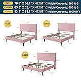 WEEWAY King Size Corduroy Upholstered Bed Frame with Adjustable Vertical Channel Tufted Headboard, Strong Wooden Slats Support, Easy Assembly, No Box Spring Needed, Pink