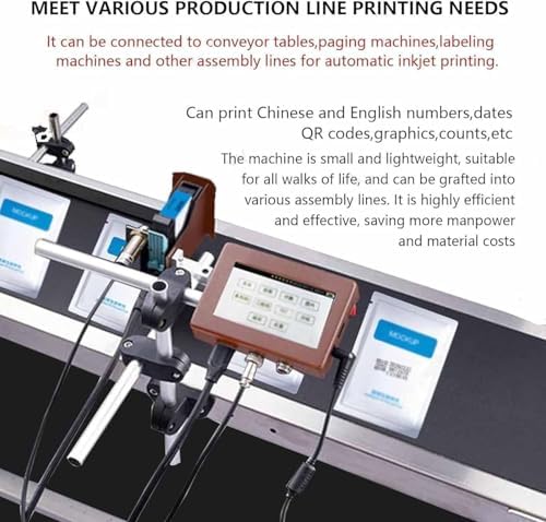 - ✔【Online Inkjet Coding Machine】This small smart assembly line coding machine can automatically print QR codes, barcodes, language characters, graphics, serial numbers, text, symbols, dates, logos, etc. Suitable for food and beverages, packaging foils, medical products. , stone, chemical and other industries.