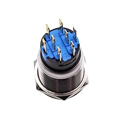 19mm 2 3 Position Metal Selector Rotary Push Button Switch Latching 220V LED Stainless Steel ON Off Knob Switch 1NO 1NC 1Pcs(Blue LED Switch,2 Po 1NO1NC)