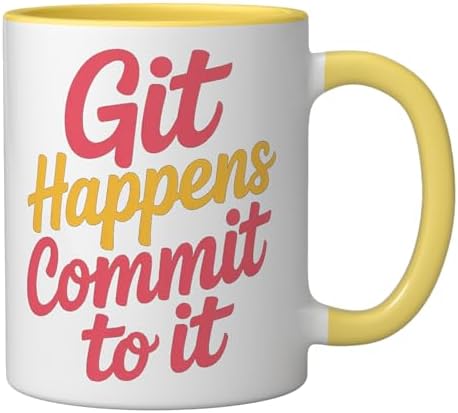 Git Happens Commit To It Dev Workflow Programmer Coder |- Ceramic Mug, Yellow/White
