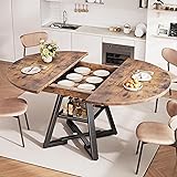 - Round Dining Table Kitchen Dining Room Dinner Table for 4-6, Space Saving Extendable Oval Circle Furniture with Pedestal Base and Storage Shelf for Kitchen Living Room (Vintage, for 6-8)