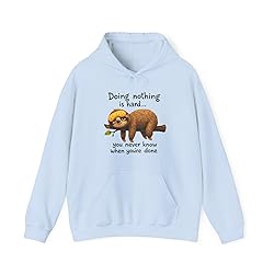 ULTIMATE SLOTH LOVER GIFT: Perfect funny hoodie for anyone who loves sloths, procrastination, and relatable humor – guaranteed to get laughs and compliments everywhere! ICONIC "DOING NOTHING IS HARD" DESIGN: Adorable sleeping sloth wearing a pineapple sleep mask with the hilarious quote “Doing nothing is hard… you never know when you’re done” printed in premium quality SUPER COMFORTABLE & COZY: 50/50 cotton-poly blend, soft fleece interior, unisex relaxed fit – ideal for lounging, napping, working from home, or casual outings DURABLE & LONG-LASTING PRINT: High-quality screen-printed graphic that won’t crack or fade – machine wash safe (wash inside out, cold water) AVAILABLE IN S-5XL: Classic fit with kangaroo pocket, drawstring hood, and ribbed cuffs – makes a great birthday, Christmas, or “just because” gift for men, women, teens, and sloth enthusiasts