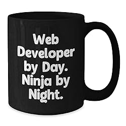 - Are you a web developer by day or a ninja by night? Do you live for coding and problem-solving? If you're a web developer looking for a fun and quirky way to show off your skills, this black coffee mug is the ideal gift for you. Not only will it keep your coffee hot, but it'll also make you feel like a superhero, sneaking around in the shadows, coding like a ninja. This high-quality ceramic mug is available in 11oz or 15oz and is safe for the microwave and dishwasher. It's the ideal gift for the web developer in your life, whether it's a colleague, friend, or family member. If you're looking for a unique Christmas gift, this is it! Imagine giving the gift of a good laugh to the web developer in your life. This fun and quirky mug is sure to bring a smile to their face and make their day a little brighter. It's a thoughtful gift that shows you care about their interests and hobbies. Plus, it's a great way to add some festive cheer to their office or workspace during the holiday season. So why wait? Treat the web developer in your life to this amazing coffee mug today. It's a gift they'll love and cherish, and it's the perfect way to show them you appreciate their hard work and dedication to the craft. Get it now and make their Christmas a little brighter!
