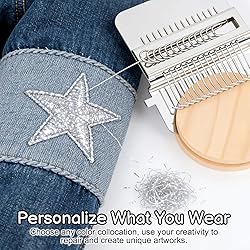 Quick and Efficient Repair Kit: Easily handles clothes with holes, tears, and everyday wear and tear, requiring no complicated procedures. Whether it's your beloved sweater, frequently worn jeans, or easily damaged kitchen towels and sofa covers, it's suitable for repairing them all Comprehensive Weaving Kit: Includes everything needed to start weaving right away—loom, hooks, and clear instructions—perfect for both beginners and experienced crafters All Skill Levels: Easy-to-use setup with intuitive hook placement ensures smooth operation, making it ideal for novices without prior experience Versatile Crafting Tool: Perfect for creating a wide range of projects, from scarves and hats to home décor items, offering endless creative possibilities Compact and Portable: Lightweight and space-saving design lets you take your weaving anywhere, ideal for travel, home use, or crafting on the go