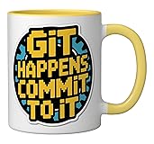 Git Happens Commit To It - Ceramic Mug, Yellow/White