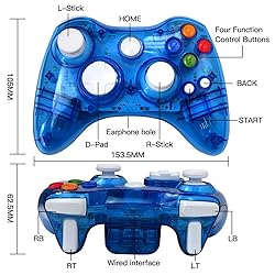 - Ergonomic Lightweight Wireless Controller for Xbox 360, 10m Lag-Free Gaming with 7-Color LED Effects, Plug-and-Play for Microsoft Xbox 360 & for Windows PC (Blue) ➤Description: Type: Wireless Gamepad Controller Operating Range: 30ft (9 meters) Connection Ways: 2.4GHz Wireless Connection Vibrating current: 50-130mA ➤Features: Upgraded and high-quality, a good replacement New and improved ergonomic design enables maximum comfort and endless gameplay Precise and Sensitive Joystick - 8-way directional D-pad and 360°analog joystick, help you stay in control Left and right pressure-point trigger buttons are designed for ease of use Two analog joystick is very sensitive and precise, make sure you accurately control and act Dual vibration feedback motors give you strong and realistic feedback Featured the eight-way directional D-pad, can help you stay in control Designed with 2.4GHz wireless technology up to 30 feet control range ➤How to sync controller to for Xbox 360: Turn on the console Hold down the large center button until the x-box 360 controller turns on There's a paring key on the controller next to the left bumper (LB) and a paring key on the front of the console, press both paring keys at the same time The light on the controller and console will flash, which means the 360 controller and console are paired successfully ➤How to connect controller to P-C: You need receiver adapter for xbox 360 (not included) Plug your receiver adapter for xbox 360 into the p-c The driver will automatically install for Win 7 8 10 system If it can not works, please try to install the driver manually Then press the connection button on the receiver and the paring key on the wireless controller for xbox 360