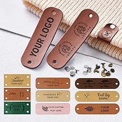 - These custom faux leather tags add a professional, personalized finishing touch to your handmade creations. Perfect for crochet items, knitted pieces, hats, beanies, scarves, and other crafts, these engraved labels let you showcase your brand or add a thoughtful personal message. Each set includes 10 tags with rivets for easy attachment to your projects. Choose from multiple shapes and colors to match your unique style and aesthetic. The laser engraving ensures crisp, clear text and symbols that won't fade or wear off over time. Whether you're labeling items for your small business, creating gifts for friends and family, or simply adding a signature touch to your handmade goods, these versatile leather tags elevate the presentation of your work. The included rivets make installation simple and secure, giving your creations a polished, boutique-quality appearance. Customize with your name, logo, or special message to make each piece truly one-of-a-kind. These tags are ideal for makers, crafters, and artisans who take pride in their handmade items and want to share their personal brand with the world.