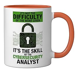 It’s Not The Difficulty Of The Work Given It’s The Skill Of The Cyber Security Analyst Great cyber security analyst design for computer programmer. If you are searching for tech security hacker or it specialist this is for you. 11-ounce ceramic mug is dishwasher and microwave-safe, lead and BPA free Features glossy finish with accent colors on interior, handle, and rim of two-tone designs