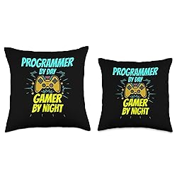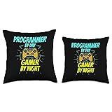 Programmer by Day Gamer by Night Funny Programmer Gaming Throw Pillow