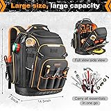 Tool Backpack, HVAC Tool Bag with Molded Base, Full Opening Electrician Tool Backpack for Men Heavy Duty, Tools Organizer Bags for Jobsite Work Handyman, Large Pockets & Combination Lock