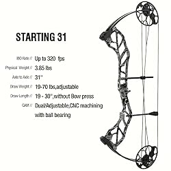 High Performance 70lbs max draw weight Easy to Tune Adjust peep sight Easy to Maintain Replace bowstring effortlessly—no bow press needed (just reduce draw weight to 0lbs) Easy to Upgrade Standard accessory screws allow seamless upgrades Durable Construction Premium CAM bearings 6061 aluminum alloy frame High-precision CNC machining for reliability Can be used from youth to adulthood without the need for replacement We promise to provide lifetime archery technical support and bow maintenance assistance to ensure your shooting experience remains top-notch. We kindly ask that you follow safety guidelines and avoid dry firing your bow.