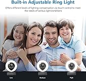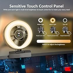 Adjustable Warm and White Light Webcam for PC. 2025 updated the full HD 1080p camputer camera has built-in ring light and Warm & White light with 24 LED. The brightness can be adjusted through the sensitive touch control, so you can achieve ideal brightness conditions in dim light environments. Webcam with Dual Stereo Microphone. USB camera for computer with light is an improved dual digital stereo audio microphone, and automatic noise cancellation for a cleaner, clearer sound that captures your sound even at a distance of 10 feet to ensure that everyone can hear the real sound, your fans can capture your voice in real-time 1080P Full HD Webcam and Protect Privacy. Professional 1080p streaming camera with 90° wide-angle lens. The maximum resolution is true-to-life 1920 x 1080 pixels for clearer display effects. The computer camera can be rotated 360° in the horizontal direction and 100° in the vertical direction. We can easily adjust the angle when not in use to protect our privacy. USB Plug and Play Camera with Multiple Accessories. Streaming webcam includes the flexible clip and adjustable tripod for optimal viewing angle and base on most displays. Easy to use, no other driver or software need to download. Plug and play via USB 2.0/3.0 interface. Wide Compatibility. The webcam with microphone supports live streaming on social gaming & entertainment sites, such as Twitch, Zoom, Skype, Youtube, Xbox one, Xsplit, Mixe, Facebook, Vlogging, OBS, and universally compatible with Mac, Windows, Android, Linux, Laptop, Desktop, etc. While easily record video and sound clearly and realistically.