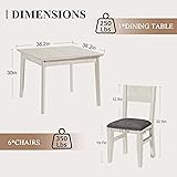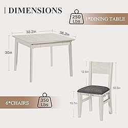 T𝗵𝗲 𝗱𝗶𝗻𝗶𝗻𝗴 𝘁a𝗯𝗹𝗲 𝘀𝗲𝘁 𝘄𝗶𝗹𝗹 𝗯𝗲 𝗱𝗲𝗹𝗶𝘃𝗲𝗿𝗲𝗱 𝗶𝗻 3 𝗽a𝗰𝗸a𝗴𝗲𝘀, 𝘄𝗵𝗶𝗰𝗵 𝗺a𝘆 a𝗿𝗿𝗶𝘃𝗲 𝗼𝗻 𝗱𝗶𝗳𝗳𝗲𝗿𝗲𝗻𝘁 𝗱a𝘆𝘀 【5 Piece Dining Table Set】Kitchen table and chairs set of 4 includes a 38.2-inch square dining table and 6 chairs with upholstery, perfect for 4 people. The unique and comfortable design of the 5-piece table and chairs set is perfect for family dinners and gatherings with friends 【Stability & Durability】Solid wood dining table set for 4 are made of high quality wood, which can withstand up to 250 pounds and is resistant to pressure and wear. Dining room set unique mortise and tenon structure ensures excellent strength and resistance to deformation 【Dining with Two Drawers】Solid wood dining room table set for 4 features two built-in drawers, combining timeless style with smart storage. Perfect for keeping napkins, utensils, or dining essentials close at hand 【Exquisite Workmanship】VECELO dining table set for 6 features an authentic textured design and elegant curves for a subtle yet sophisticated look, hard texture. The surface of the dining table is smooth, not easy to stain, fade-resistant, scratch-resistant 【Natural & Eco-Friendly】Crafted from solid wood with a focus on sustainability, this dining table set for 4 brings natural beauty and eco-friendly living to your home. Free from artificial materials, it’s a timeless choice that’s kind to the environment — and built to last