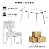 Durable & Practical Dining Table Set: Includes 63in retangular glass dining table and 4 Chenille dining chairs. The table’s robust build and the chairs’ supportive, long-lasting construction make this set a functional, stylish addition to kitchens, dining rooms, or open-concept living spaces. Sturdy 63" Glass Dining Table: Features a sleek rectangular glass top supported by 4 durable metal legs, boasting a 300-lb weight capacity for reliable stability during meals or gatherings. T-back Design Dining Chairs: Features a modern T-back silhouette paired with sturdy stainless steel legs, blending seamlessly with contemporary, minimalist, or on-trend home interiors. Comfortable Chenille Dining Chairs: Upholstered in soft chenille fabric with medium-density foam cushioning, supporting the most comfortable seat experience, designed to keep you comfortable during long dinners, game nights, or casual hangouts. Floor-Friendly Adjustable Foot Pads: Equipped with adjustable foot to keep the table balanced on uneven surfaces—no wobbling, plus protection against scratches on hardwood, tile, or laminate floors.