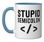 Stupid Semicolon Funny Software Coder Programmer Ceramic Mug, Blue/White
